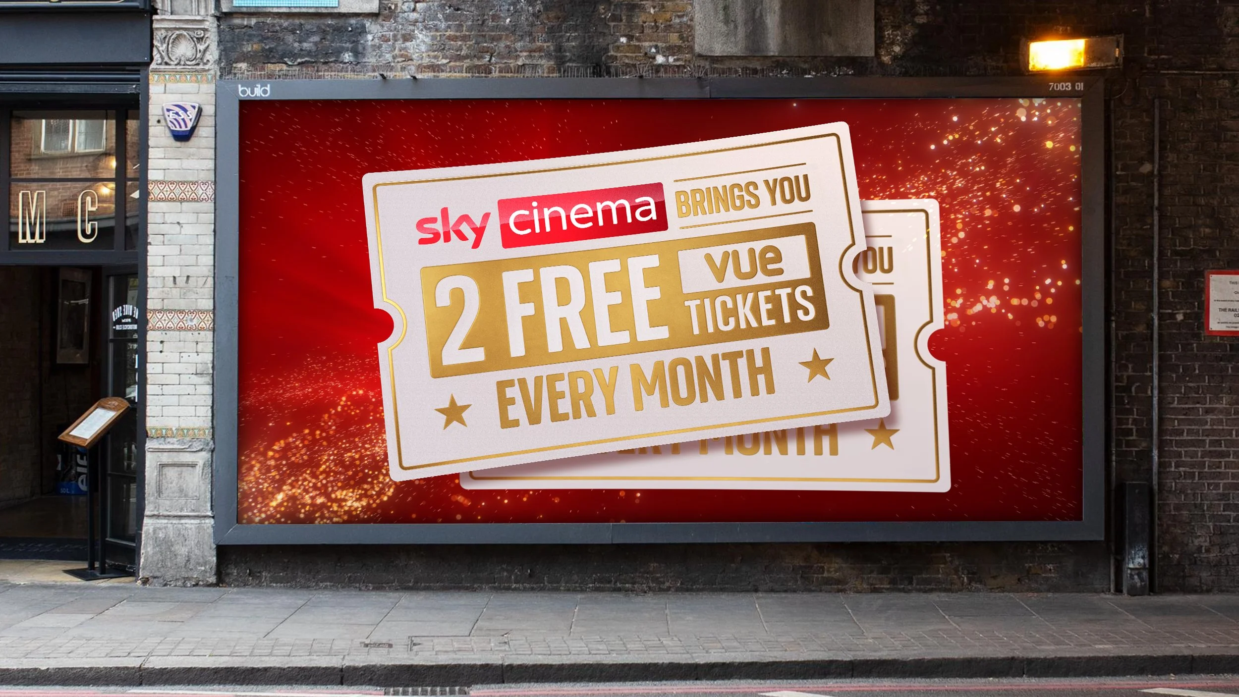 A partnership with Vue cinemas, where Sky Cinema customers receive 2 free Vue tickets each month.